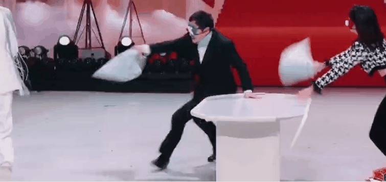 唐国强看起来很活跃,心急火燎,而徐明浩连枕头都不敢挥,全程拿来当盾牌挡头,径直丧失了抨击力。