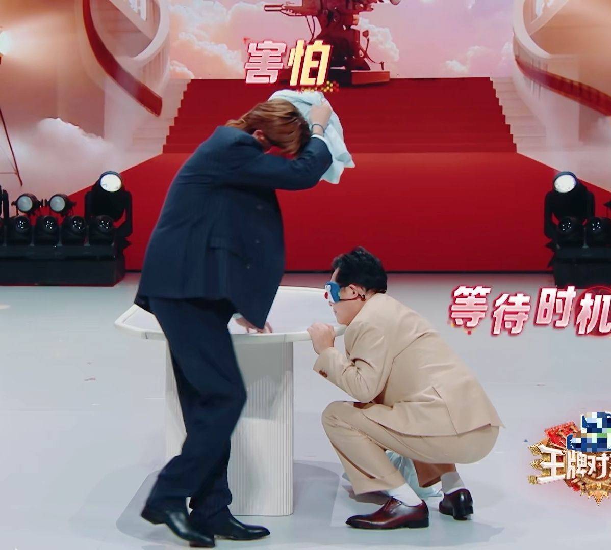 徐明浩连眼罩都还没戴好,因为节目组定的敌手是唐国强,于洋就警告上了,
