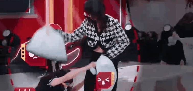 但四位女生都是体面东说念主,固然2v2乱作一团,但全球并莫得动真格的互锤,而是在安全限制内挥枕头。