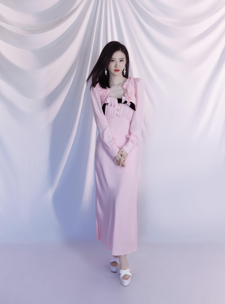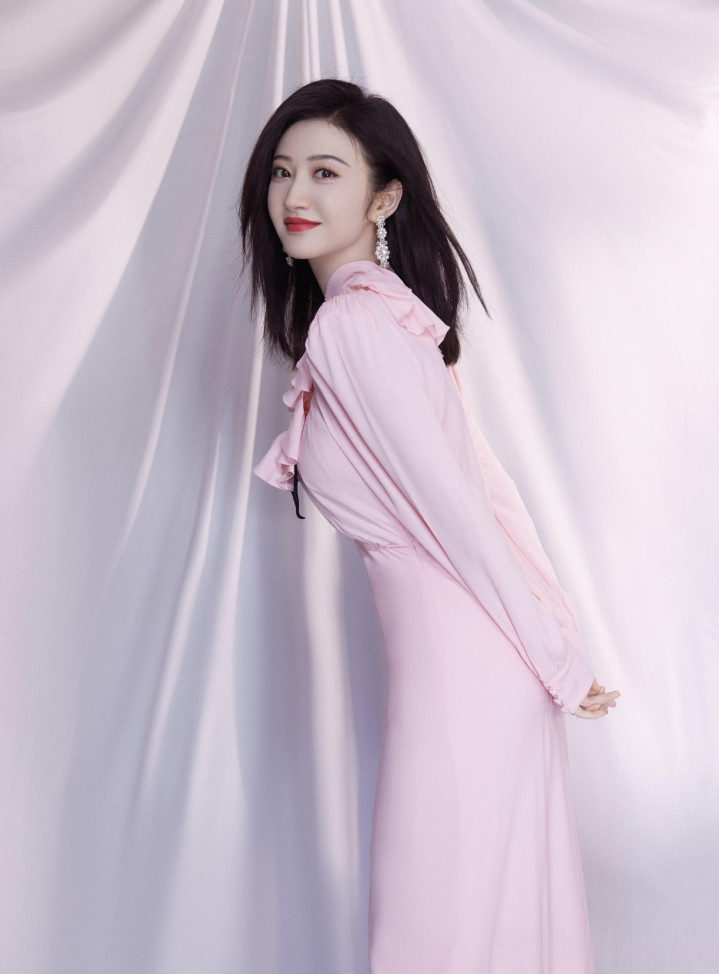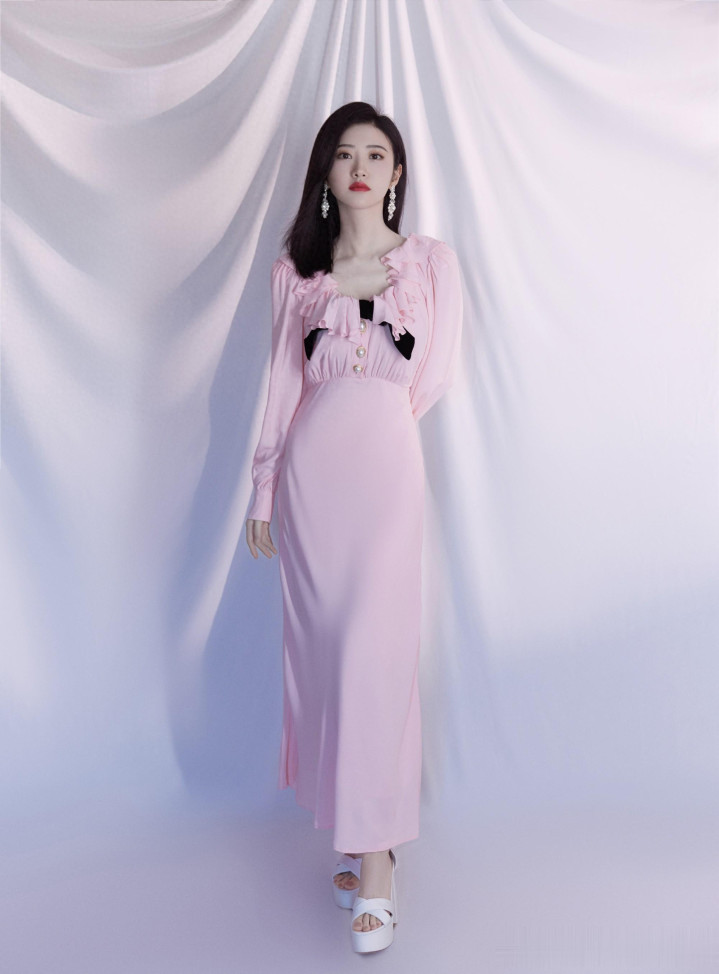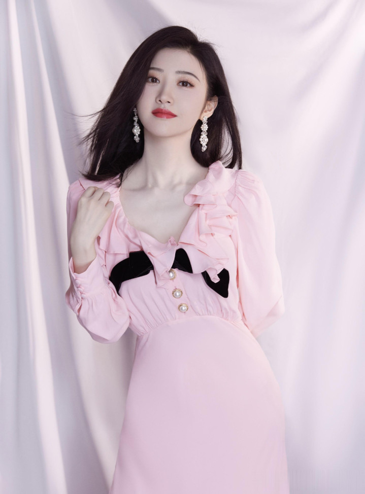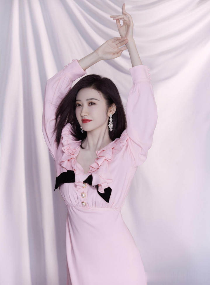 欧洲杯体育景甜粉裙缀黑蝴蝶结, 柔雅灵动展娇俏气质-开云「中国」kaiyun体育网址-登录入口