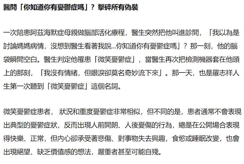 除了袒露母亲正与阿兹海默症反抗外,罗志祥首度承认我方耐久承受“浅笑型抑郁症”的折磨,并坦言已暗暗立下遗嘱。他在精神层面将女牙东谈主小霜的两名子女视为亲生骨血,快乐此生齐会督察他们、心情到底。
