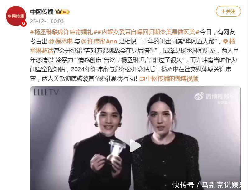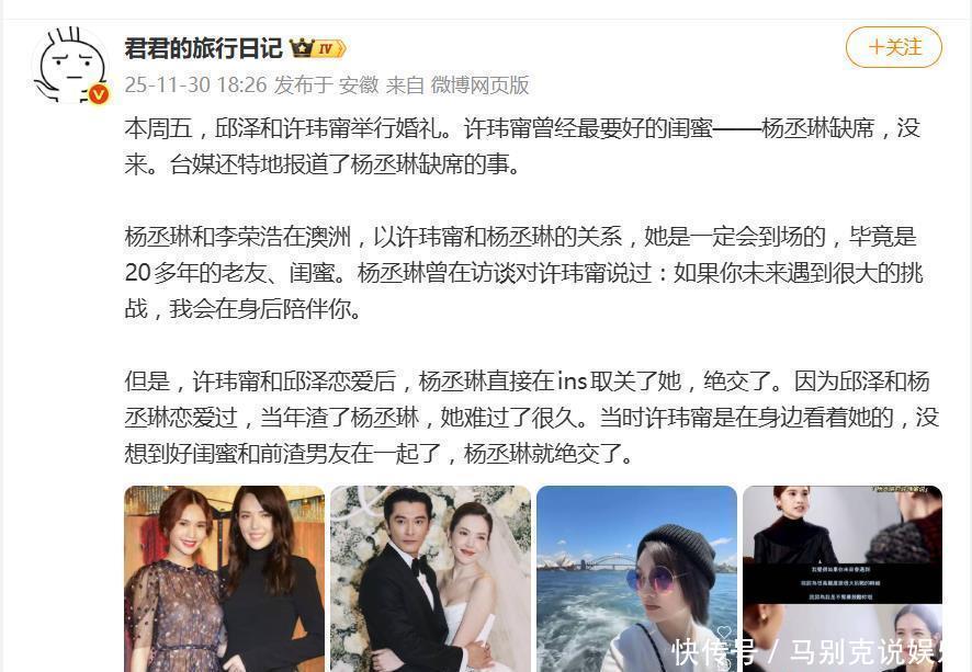 背后的原因,直指一段旧日创伤。邱泽早年与杨丞琳恋爱时,被指冷暴力离异,让杨丞琳“痛心了很久”。而那时行动闺蜜的许玮甯,全程见证了这段心理从驱动到落空。如今,好友与曾深深伤害过我方的前男友走到沿途,对杨丞琳而言,无疑是一种双重抵御。