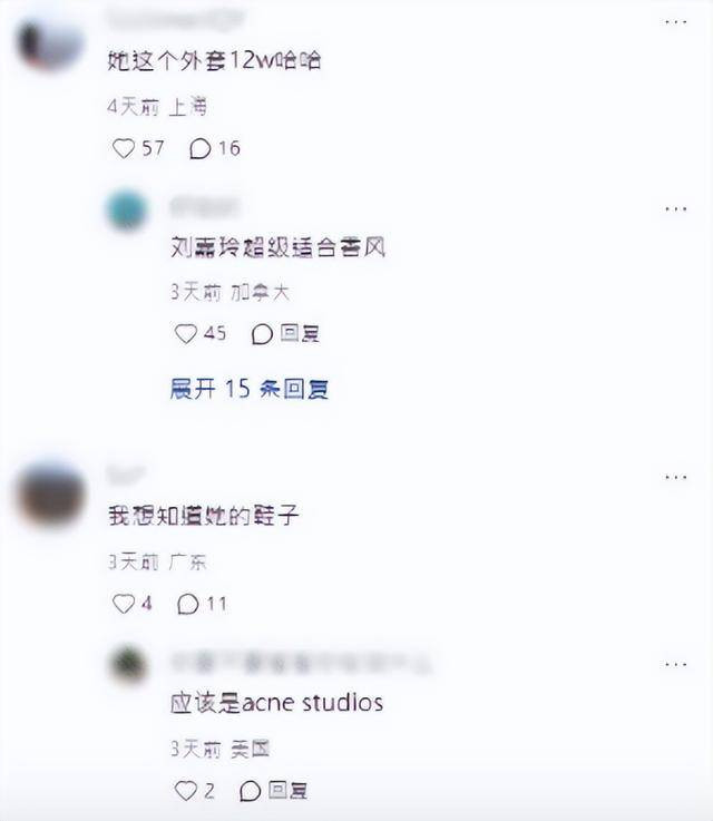 有网民称刘嘉玲当日所穿的外衣是Chanel,价值在12万港元,而她的一对小白鞋,是acne studios品牌,价值在4千多港元。