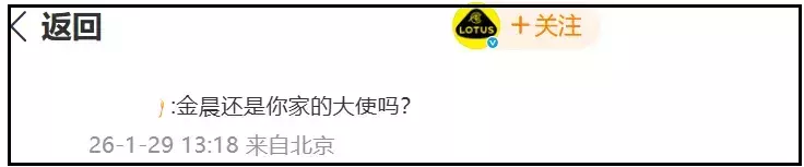 更无言的还有莲花跑车,跑车品牌大使卷入交通滋事争议,好一个地狱见笑,仍是有网友跑到莲花跑车账号驳斥区,贬低金晨如故不是他家代言东谈主了。
