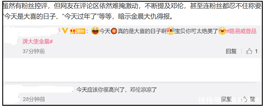 提及来,邓某翻车今日,金晨还发了一条代言宣传动态,因为二东谈主来回进程并不惬心,网友还给金晨留言,恭喜她大仇得报,着力不外几年时代,金晨目击着就要走向前男友同款封杀路了。