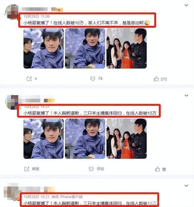 小杨哥从始至终未负责出头,旗下门徒以及主播有了新算作,领先,主账号“小杨臻选”打头阵低调开播,固然莫得掀翻多大的水花,也提前为自后三只羊主播试试水。第一场复播反响不差,尔后,小杨哥的过劲主播“小雨女装”,“超哥数码”以及四大爱徒之一“陈意礼”纷纷谨防文告总结。