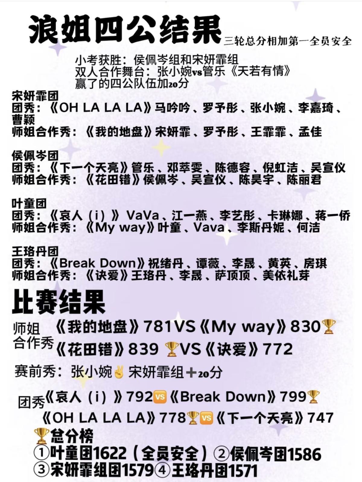 在第四轮舞台公演中,节目组共缠绵三轮舞台,划分是:赛前秀、学姐衔尾秀、团秀,字据录制规定,三场比拼赢得最高分的团,全员安全,其余团全员危机。