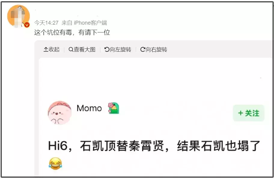 出说念7年,石凯上过湖南台元宵晚会、跨年晚会、春节晚会,更是在28岁男星秦霄贤曝难看闻之后,经常登上湖南台综艺《你好,星期六》舞台,这一次石凯和秦霄贤曝出了同款私生计丑闻,有网友念念起来,芒果似乎挑升让石凯接秦霄贤的班,谁念念到还在考察期,就又塌房了,就说这个位置是不是有毒啊?