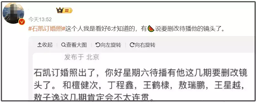 与此同期,开动有爆料称,湖南台综艺《你好,星期六》要改换石凯接头镜头了。