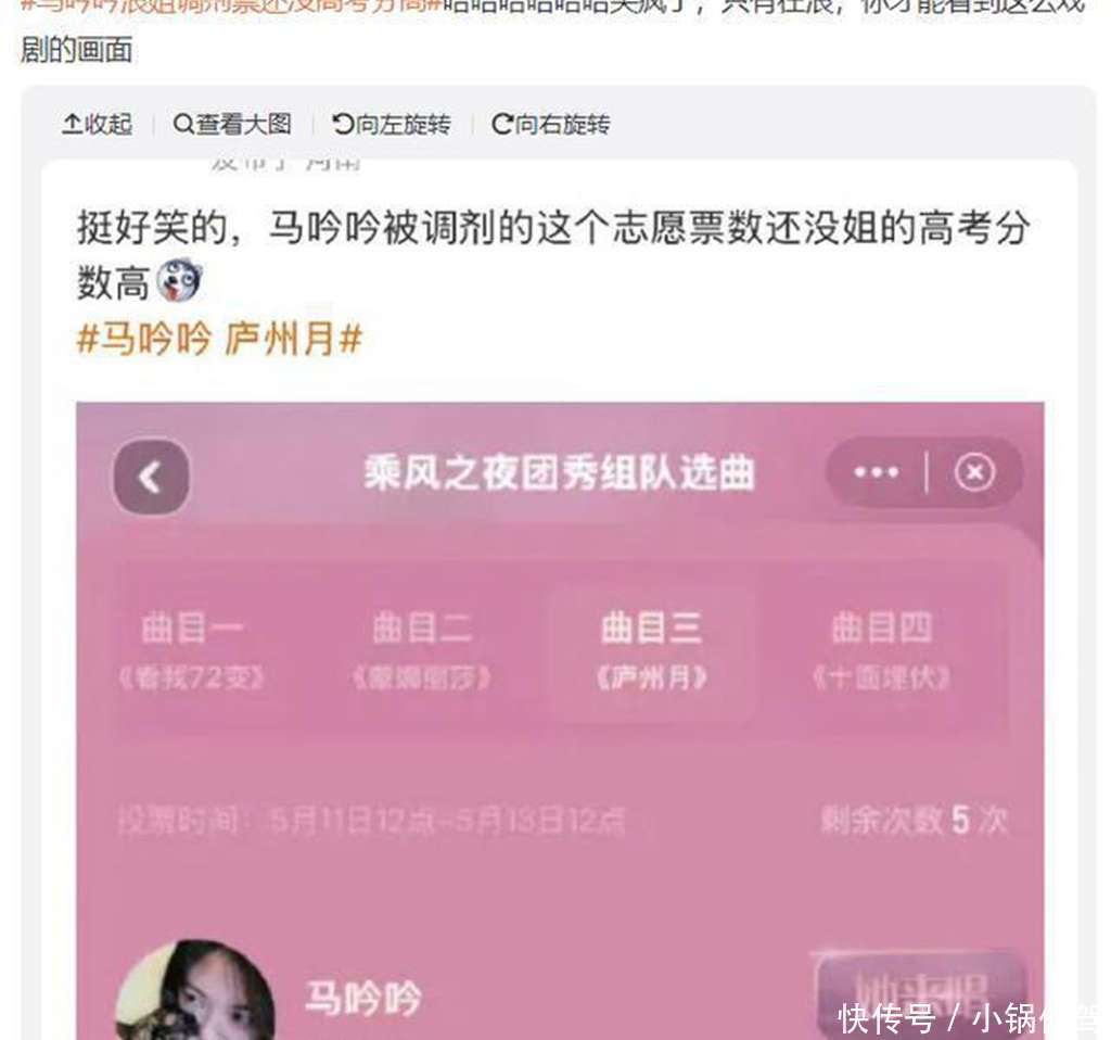 马吟吟的粉丝们更是气不打一处来,直呼这皆备是《浪姐6》开播以来最低的调剂票数!“马吟吟的高考分数都比浪姐调剂票数高”的话题,立马冲上热搜,引来大批网友围不雅。